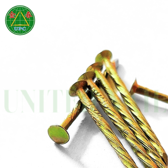 1-3/8 Inch Yellow Plated Steel Nails Ring/Spiral/Smooth Shank Custom Size Top Choice for Woodworking with Checkered Head Design