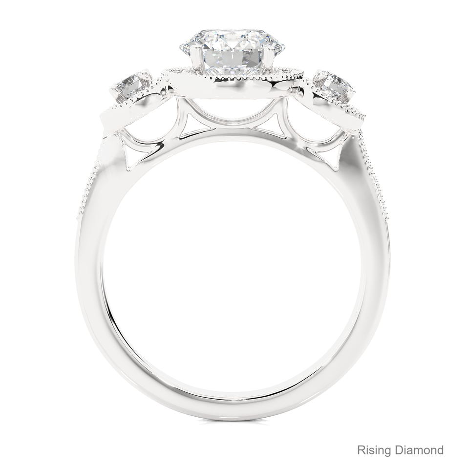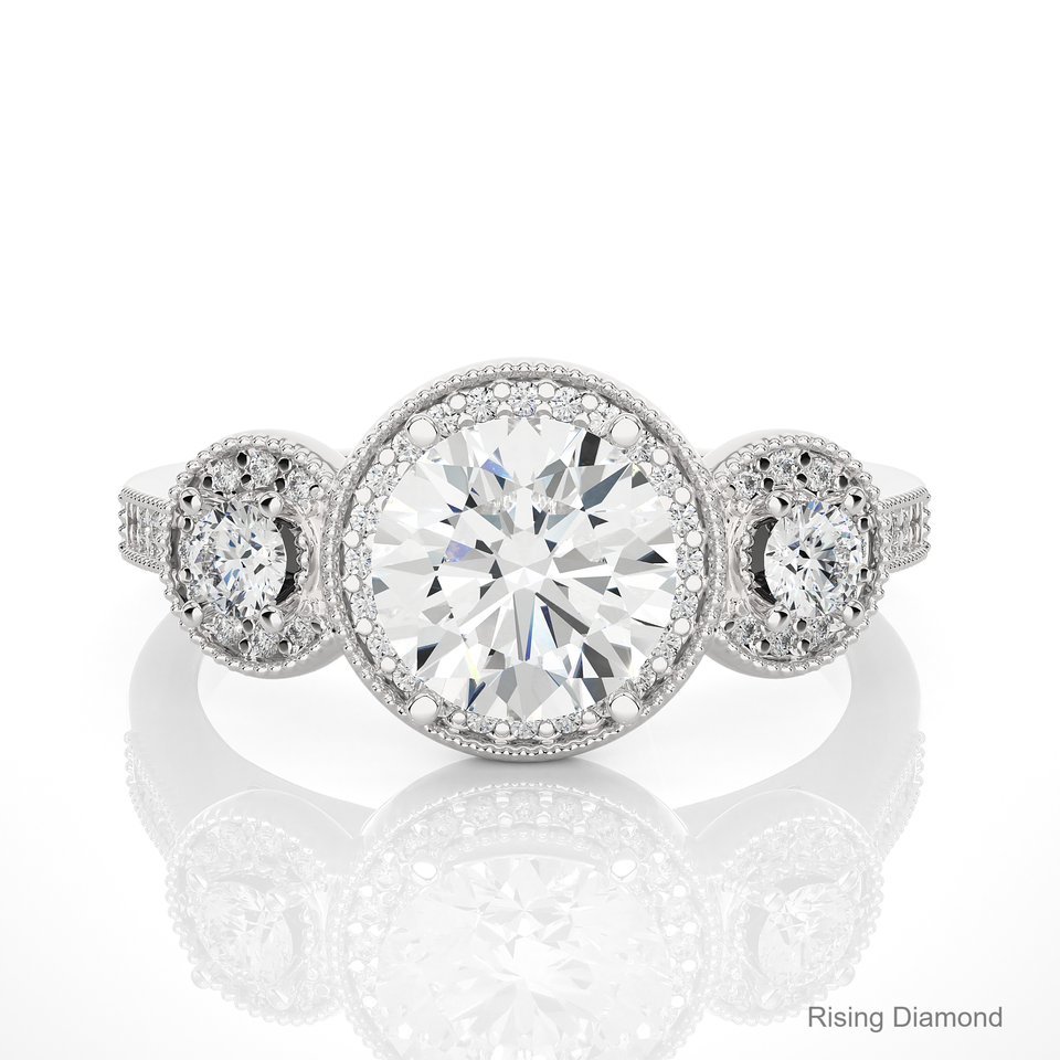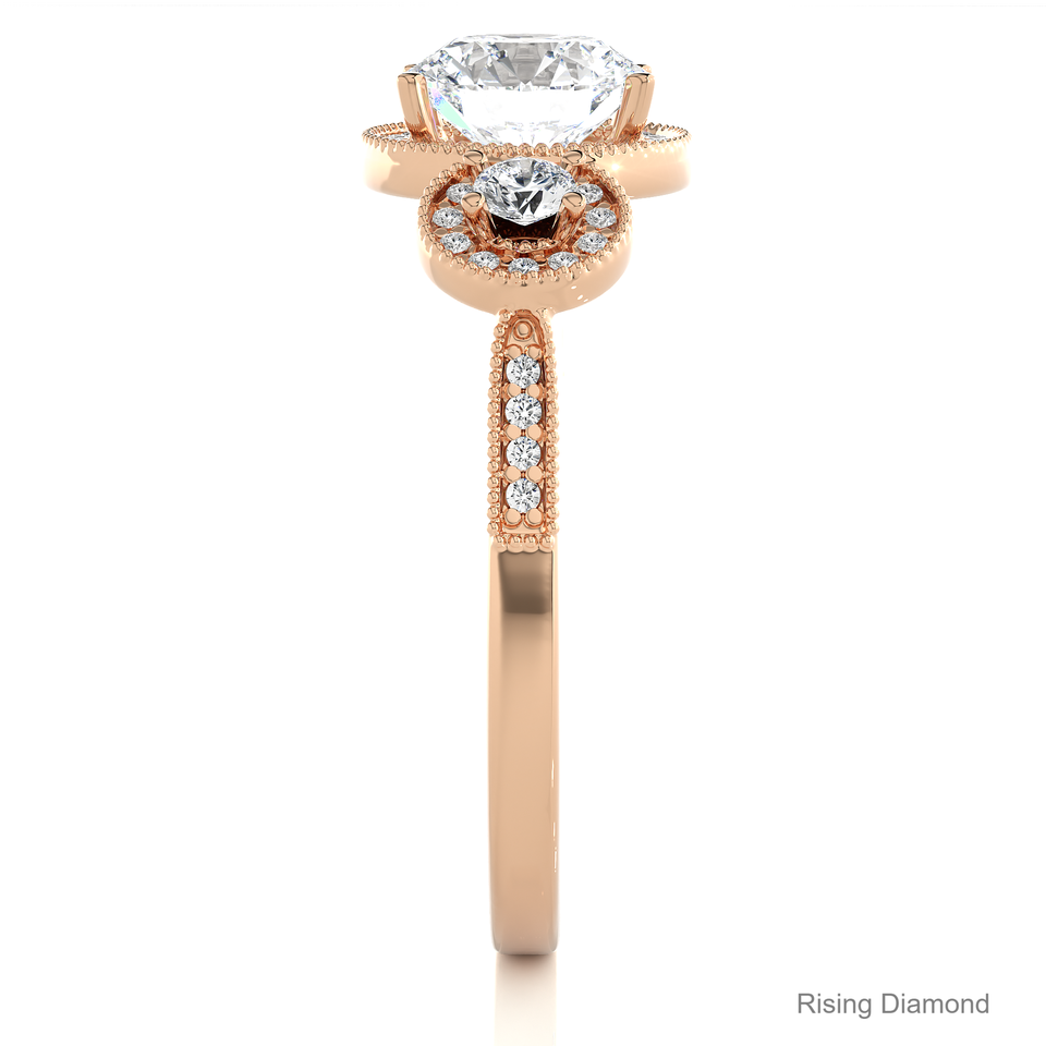 แหวนหมั้นเพชรสำหรับปลูกในห้องปฏิบัติการทรงกลม1.3กะรัตหินสามก้อนโรสโกลด์สไตล์โบฮีเมียนได้รับการรับรองของขวัญครบรอบปีสำหรับเธอ