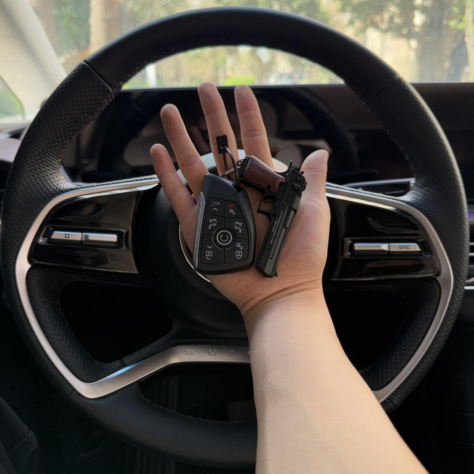 1:3 Scale Mini Gun Keychain, Alloy Gun Model Desert Eagle with Wooden Handle, Non-Firing Handmade Toy for Adults and Gifts