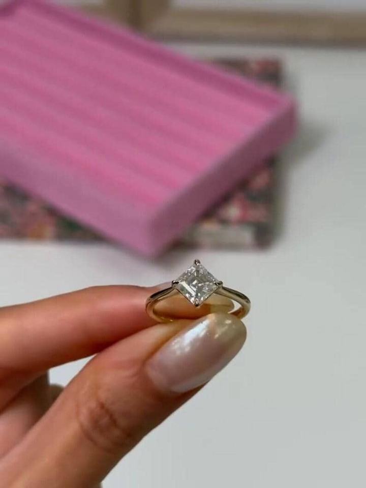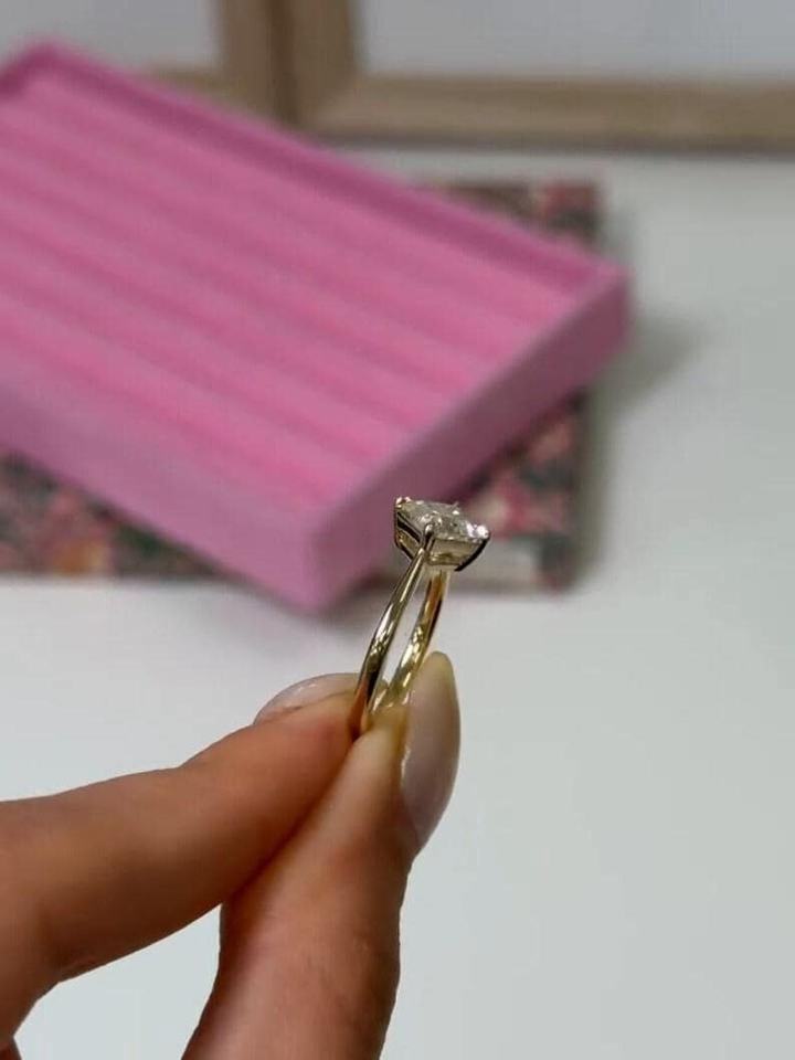 แหวนหมั้นเพชรโมอิสซาไนต์ทรงแอสเชอร์ 1.30 กะรัต เงินแท้ 925 ชุบทองคำเหลือง ดีไซน์เรียบหรูแบบมินิมอล