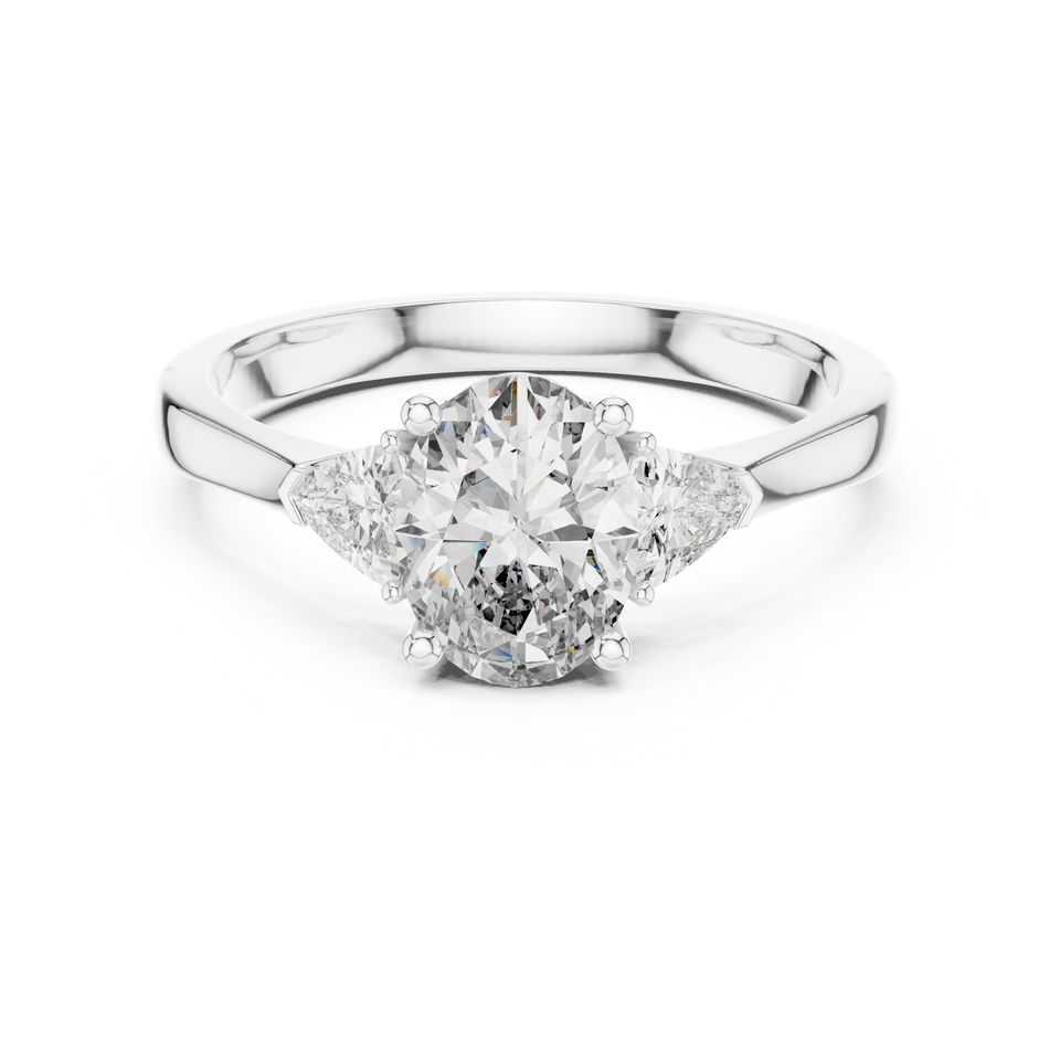 แหวนหมั้นทรงรี 1.30 กะรัต รุ่น Royal Crown Trilogy ประดับเพชรสามเม็ด เงินแท้ 925 ดีไซน์หรูหรา โดย Krishnam Jewel