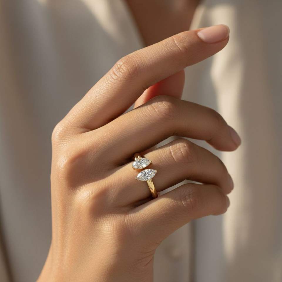 แหวนเพชร1.30 CTW Marquise & Pear CUT Toi et Moi แบบ9K
