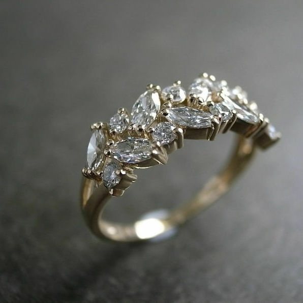 1.39 TCW Colorless Marquise Cut Moissanite Cluater Ring 925 Sterling Silver