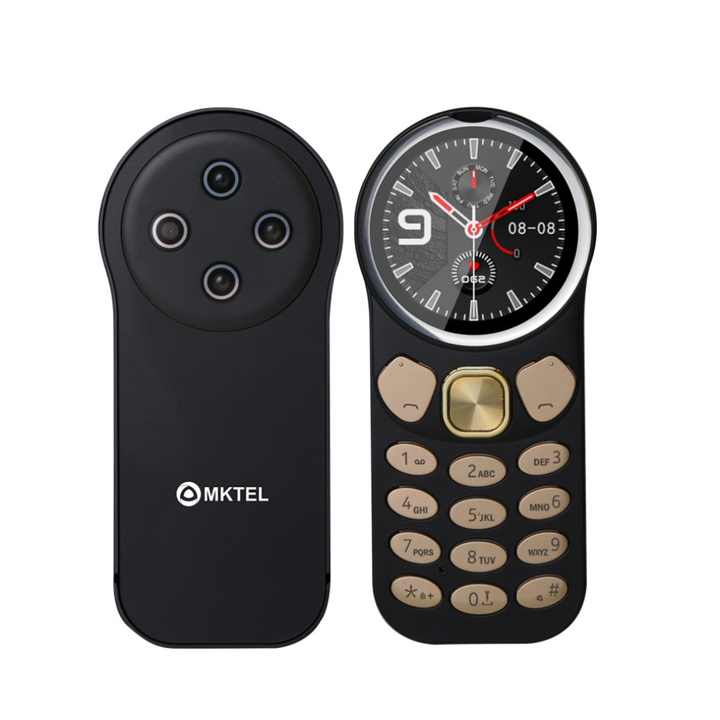 โทรศัพท์มือถือหน้าจอทรงกลมขนาด 1.39 นิ้ว รองรับซิมคู่ 2G สำหรับผู้สูงอายุและวัยรุ่น ดีไซน์กะทัดรัด พร้อมวิทยุ FM หน่วยความจำ 32MB RAM และ 16GB T-Card