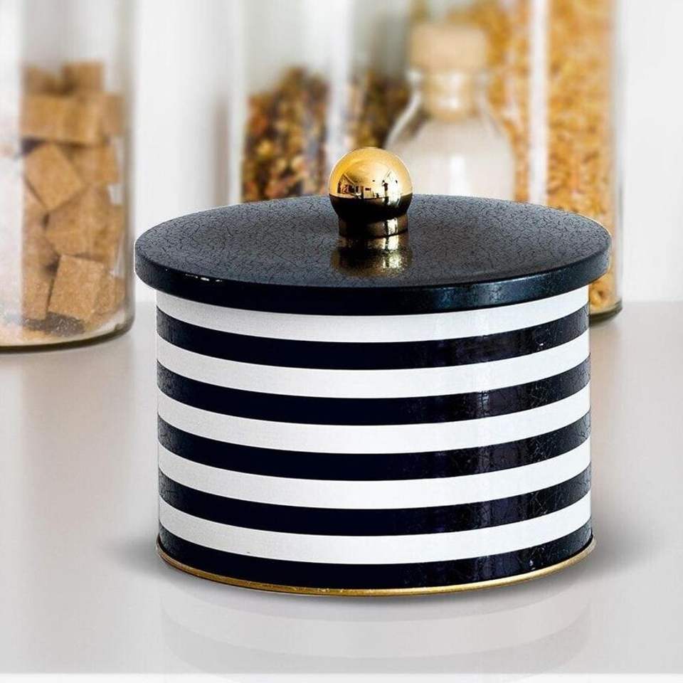 คอนเทนซาน EF141G9 กระป๋องโลหะทรงกลมลายเส้นขาวดำ ขนาด 1.3 ลิตร พร้อมหูจับแบบลูกบิด 140x100 มม.