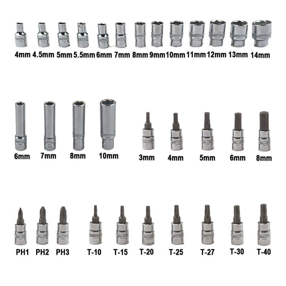 1/4"Dr. 72T Socket Set with 37PCS for Auto Repair Tools more hand tools