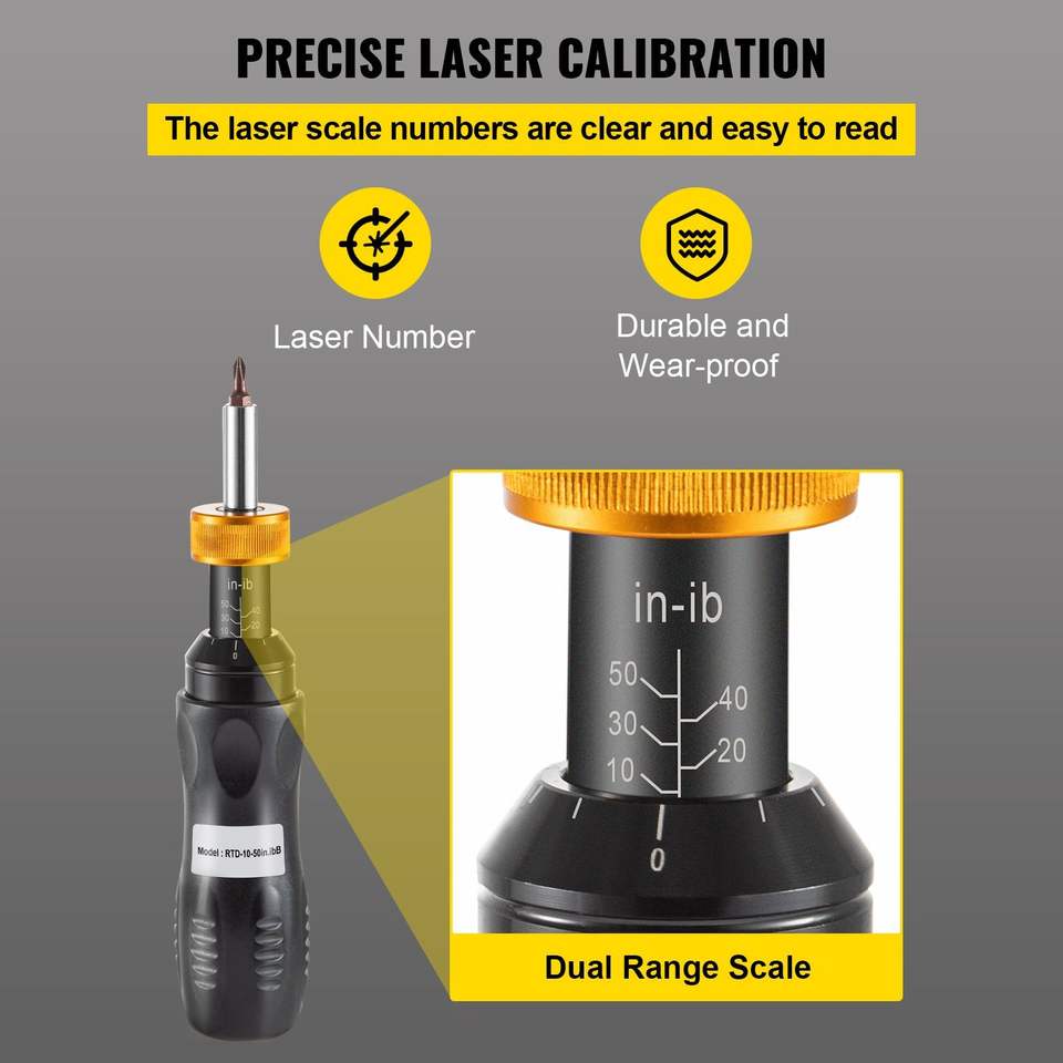 ชุดประแจไขควงแบบแม่นยำขนาด 1/4 นิ้ว ช่วงการปรับแรงบิด 10-50 นิปอน-ปอนด์ ปรับได้ 5% ทุก 5 นิปอน-ปอนด์