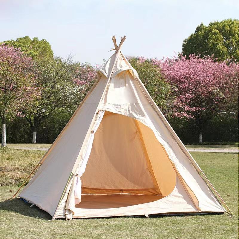 เต็นท์ผ้าฝ้ายกันน้ำสำหรับ1-4คนเต็นท์อินเดียสำหรับครอบครัวขนาดใหญ่กลางแจ้งเต๊นท์กางเต็นท์แคมป์ปิ้งหนึ่งห้องนอน