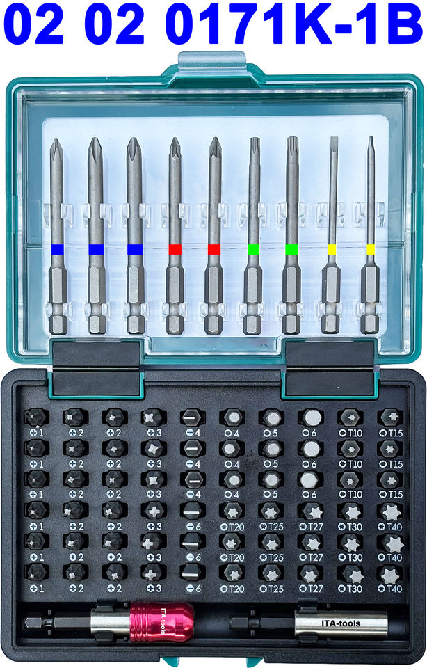ชุดดอกไขควง 1/4" x 25 และ 75 มม. 71 ชิ้น พร้อมวงแหวนสี สำหรับงานอุตสาหกรรม คุณภาพมาตรฐาน OEM มีจำหน่าย ผลิตในไต้หวัน