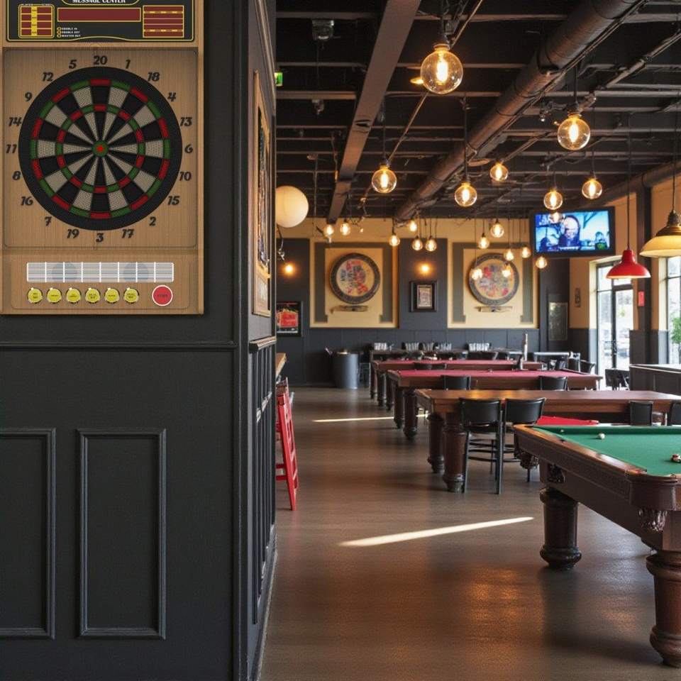 กระดานปาลูกดอกอิเล็กทรอนิกส์ LED สำหรับเล่นในร่ม ทำจากไม้ ทนทาน สำหรับ 1-4 ผู้เล่น รองรับ 4 โหมดเกม พร้อมลูกดอก 12 ดอก และหัวลูกดอกสำรอง 100 หัว - รับผลิตแบบ OEM/ODM