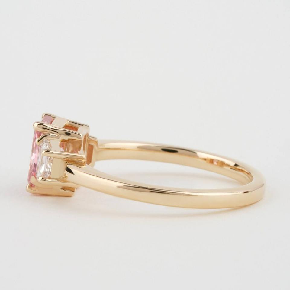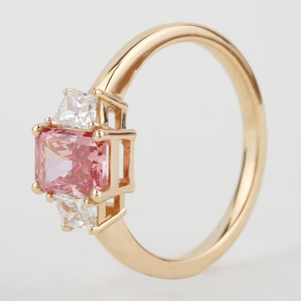 1.40 TCW Pink Colored Radiant Cut Lab Grown Diamond Ring designed with a Brilliant Fancy Pink CVD Colored Diamond that showc