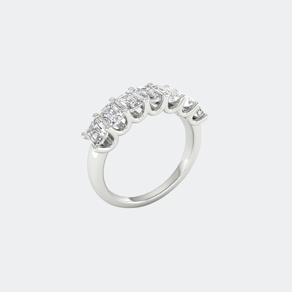 แหวนเพชรทรงเอเมอรัลด์ 1.40 กะรัต แบบครึ่งวง ทองคำ ประดับเพชรแล็บโกรว์ สี E ตัวเรือนแบบหนามเตย สำหรับผู้หญิง สวมใส่ในงานแต่งงาน