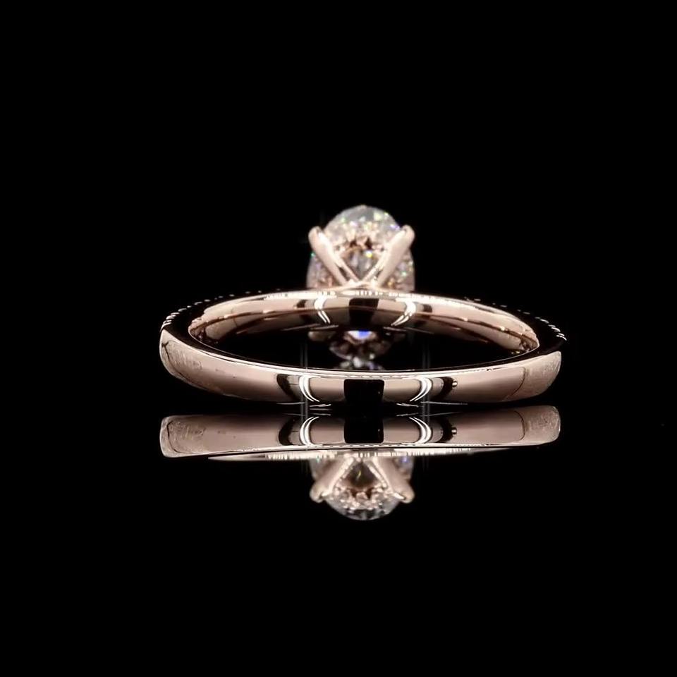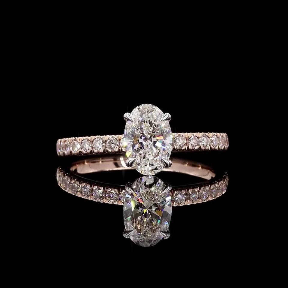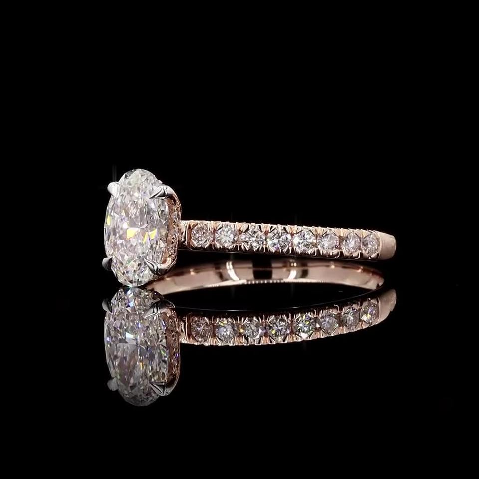 แหวนหมั้นเพชรขนาด1.45กะรัตรูปไข่สี E-F ใส VVS-VS 14K โรสโกลด์เครื่องประดับเจ้าสาวผ่านการรับรองจริยธรรม
