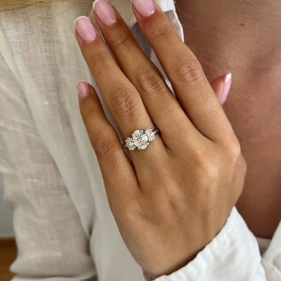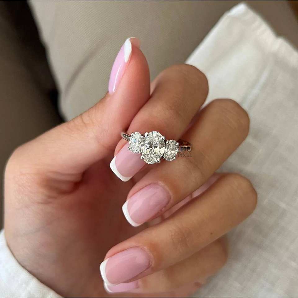 1.5-2.5กะรัต VS1เพชรรูปไข่สามเม็ดแหวนหมั้น/14K แหวนเพชรสามเม็ดสีทองคำขาว3เม็ด/แหวนสามเม็ดรูปวงรี