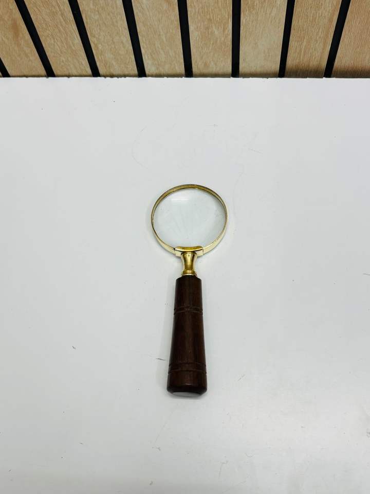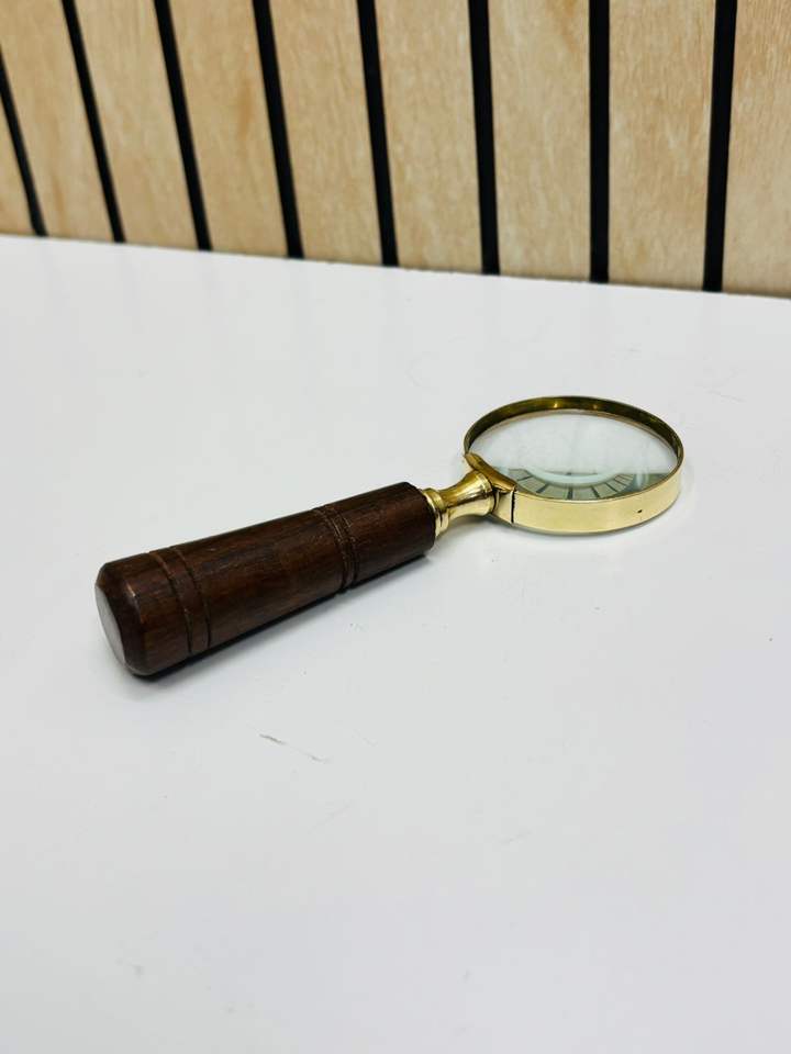 แว่นขยายทองเหลืองขนาด 1.5 นิ้ว พร้อมด้ามจับไม้ | แว่นขยายสำหรับอ่านหนังสือและตรวจสอบแบบโบราณ