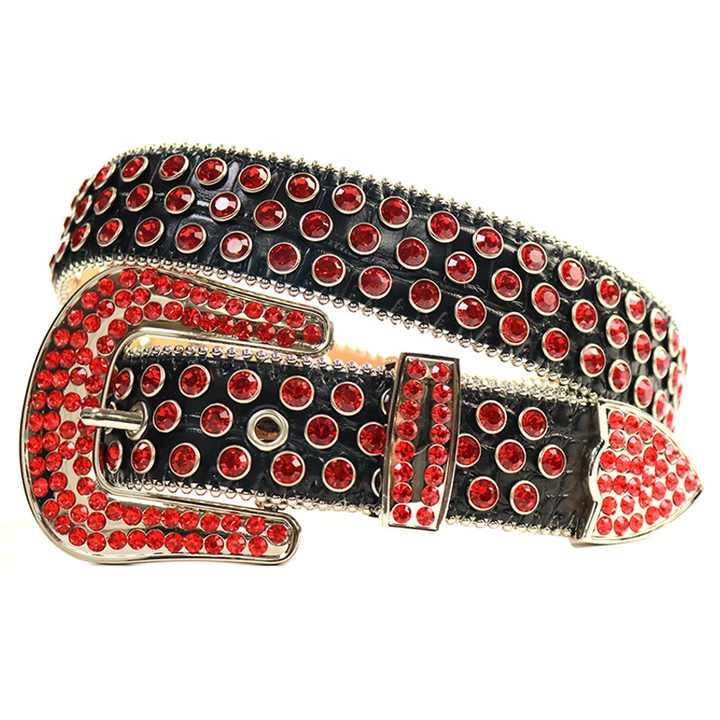 เข็มขัดคาดเอวแบบคาวบอยตะวันตกสำหรับผู้ชายประดับด้วยพลอยเทียมประดับคริสตัลลายจระเข้กว้าง1.5นิ้วสำหรับกางเกงยีนส์