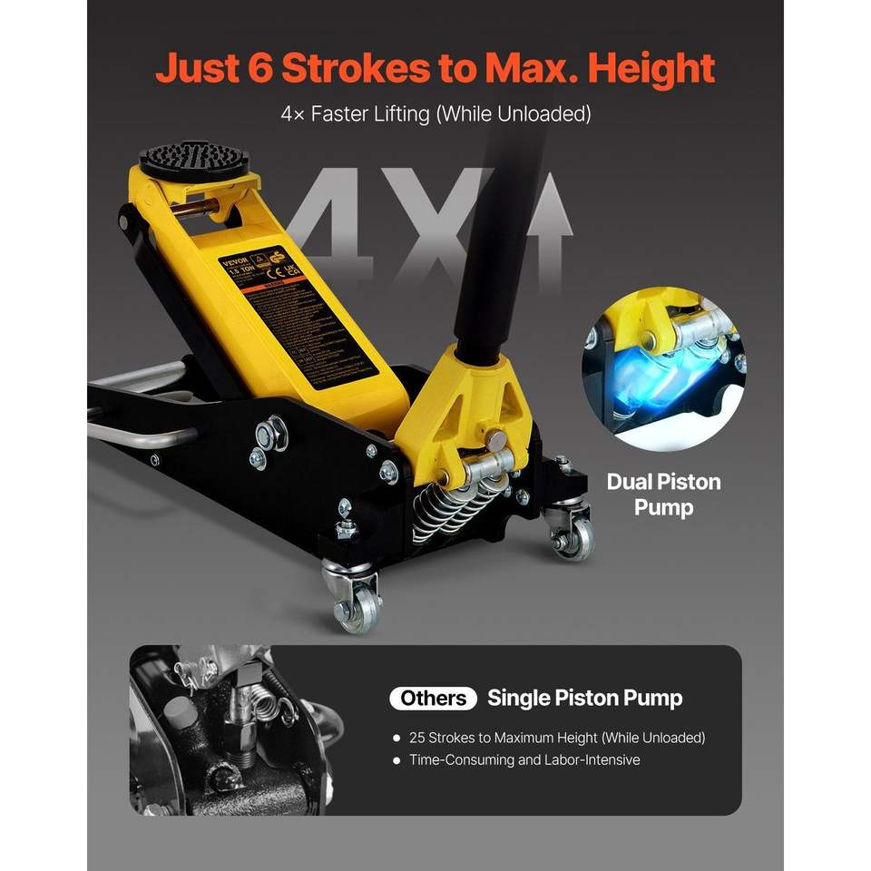 แม่แรงยกรถแบบเตี้ย 1.5 ตัน ทำจากอะลูมิเนียมและเหล็ก พร้อมปั๊มยกเร็วแบบลูกสูบคู่