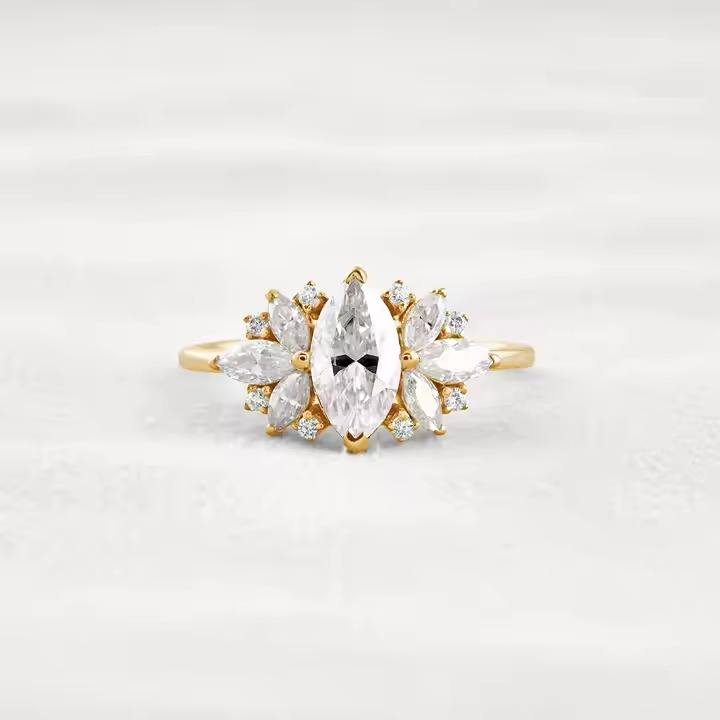 แหวนหมั้นเพชรขนาด1.50กะรัตเจียระไนในห้องทดลองขนาด14K สีทองล้วน VVS1สไตล์อาร์ตเดคโคสำหรับงานแต่งงานของผู้หญิงไข่มุกมอิสซาไนต์