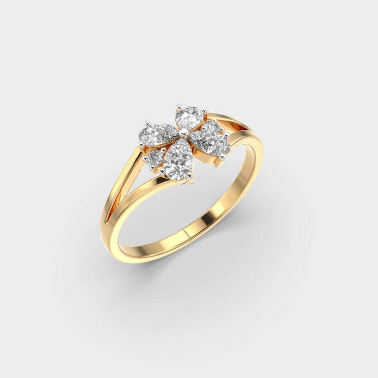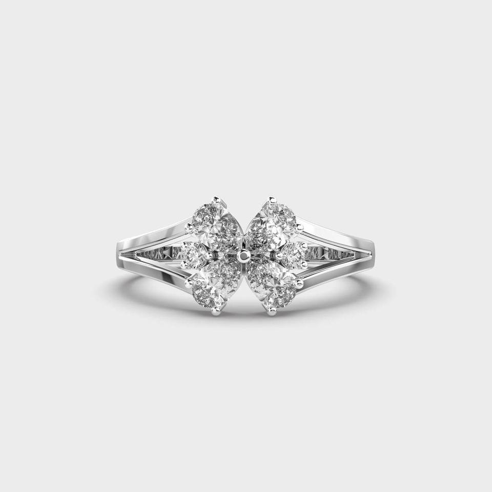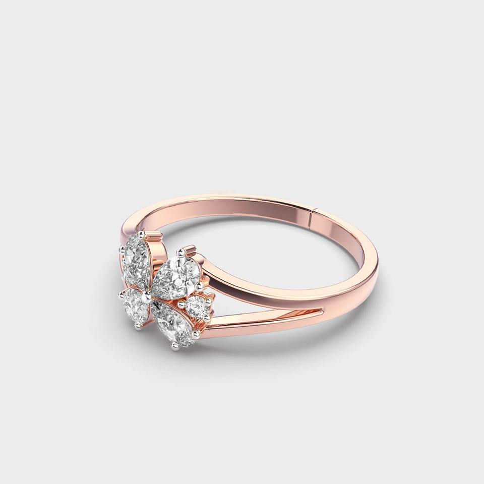 แหวนหมั้นเพชรทรงลูกแพร์ 1.50 กะรัต เพชรเลี้ยงในห้องปฏิบัติการ ดีไซน์รูปผีเสื้อประดับดอกไม้ แหวนแต่งงานสไตล์ลำลอง ชุบโรเดียม