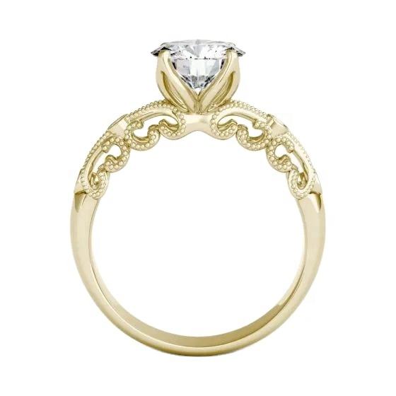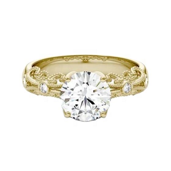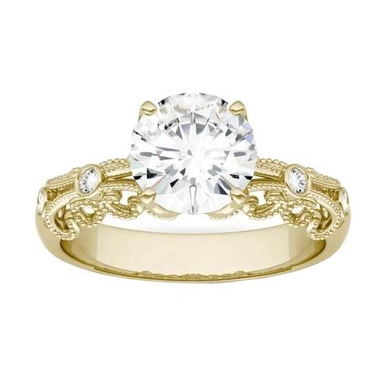 1.50กะรัตรอบสดใสตัดห้องปฏิบัติการปลูกเพชรสไตล์วินเทจแหวนหมั้น14พันเครื่องประดับทองสีขาวสำหรับผู้หญิง