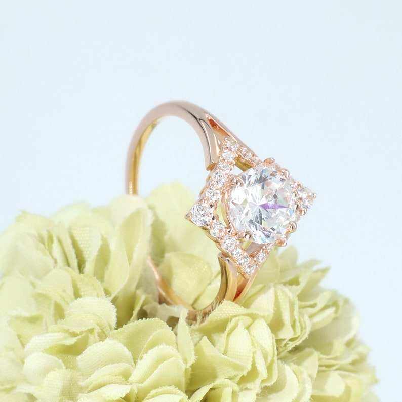 แหวนหมั้นเพชรเม็ดกลม1.50กะรัตสำหรับผู้หญิงขนาด14K โรสโกลด์เหมาะสำหรับงานปาร์ตี้ของขวัญที่ไม่เหมือนใคร