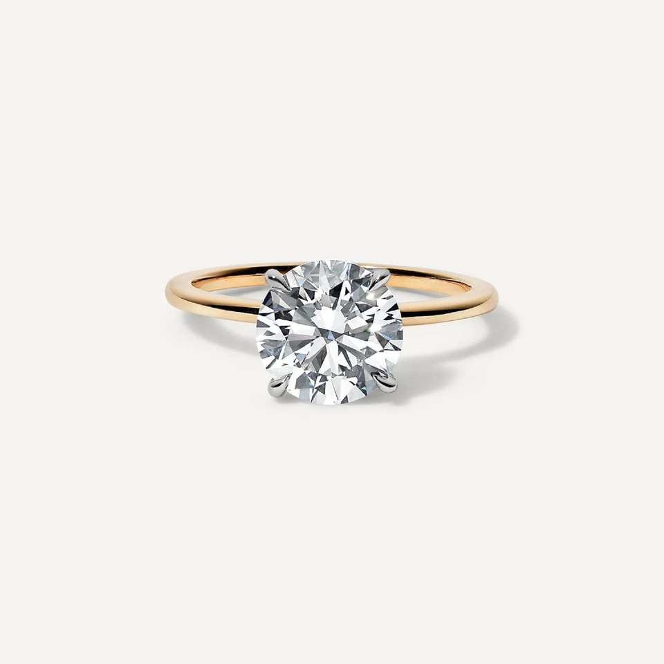 แหวนเพชรโมอีสทรงกลมสวยงามและทันสมัย1.50กะรัตแหวนหมั้นทำด้วยมือสีทองล้วนสำหรับขอแต่งงาน