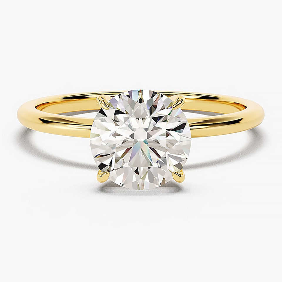 1.50 Ct Round Cut Lab Grown Diamond Engagement Wedding Ring In 14K Gold Classic Bridal Style