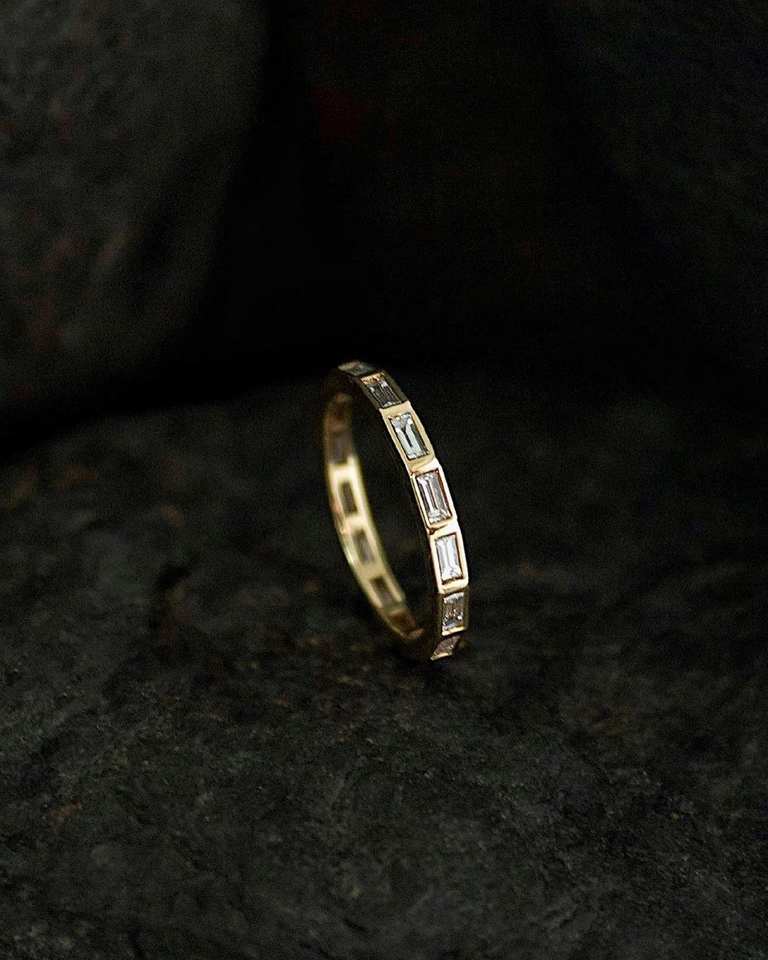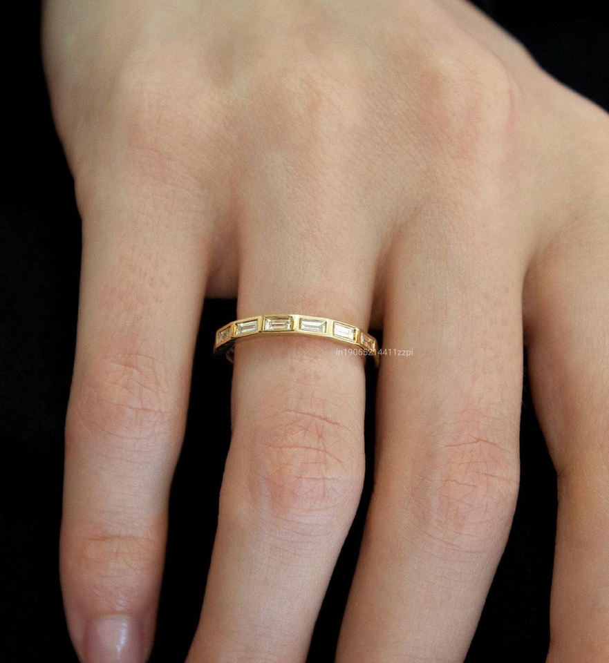 แหวนแต่งงานสำหรับผู้หญิง ทรงบาแกตต์ 1.50 กะรัต ประดับเพชรแบบเซ็นเจอร์เรชั่นบีเซลเซ็ตติ้ง สไตล์อาร์ตเดโค ได้รับการรับรองจาก GRA ชุบทอง 14K