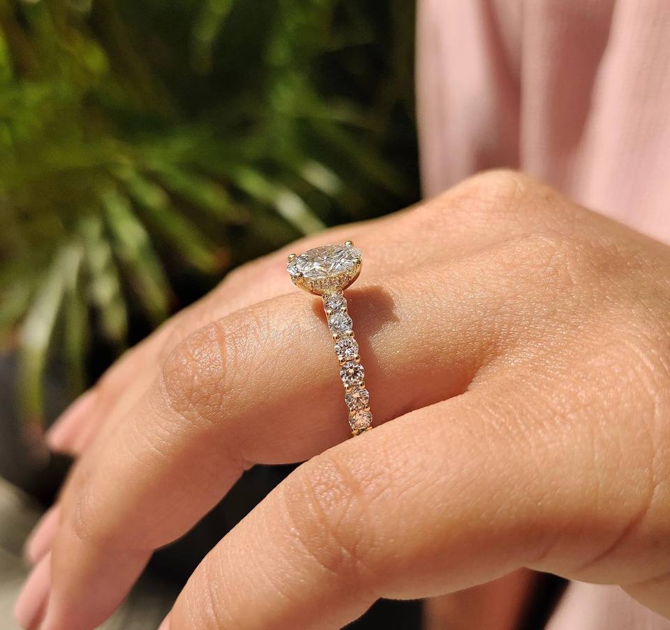 แหวนเพชรทรงรีขนาด 1.50 ถึง 5.00 กะรัต ฝังเพชรแบบพาเว่ แหวนแต่งงานเพชรเพาะเลี้ยงในห้องปฏิบัติการ วงแหวนแบบพาเว่ ทอง 14K/18K เงิน PT950/S925 รับรองโดย IGI