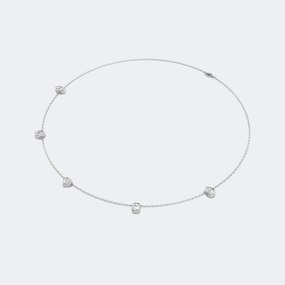 สร้อยคอเพชรทรงต่างๆ น้ำหนักรวม 1.50 กะรัต ตัวเรือนทอง 14k เพชรเพาะเลี้ยงในห้องปฏิบัติการ รูปทรงหลากหลาย กลม รี หยดน้ำ สำหรับผู้หญิง