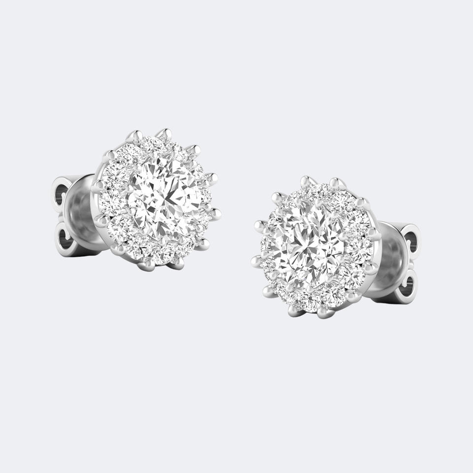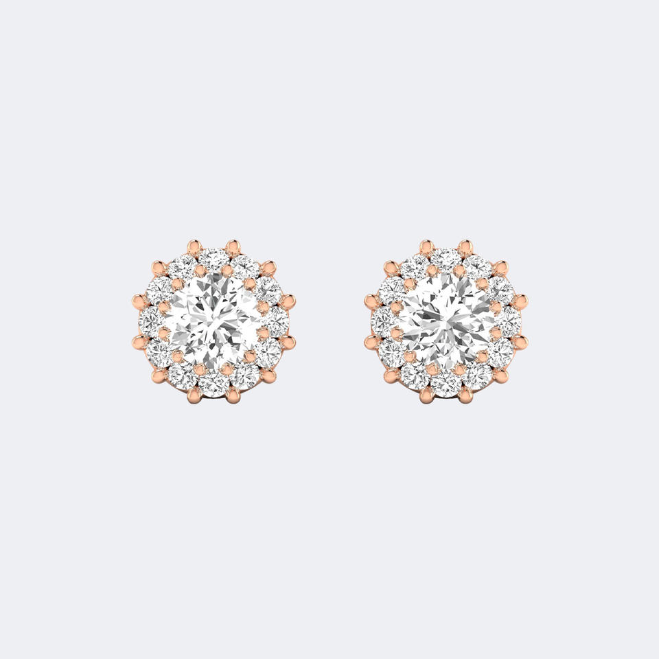 1.50CTW Round Halo Prong Flower Cluster Stud Earrings Gold Lab Grown Diamond Floral Sparkle Jewelry for Women