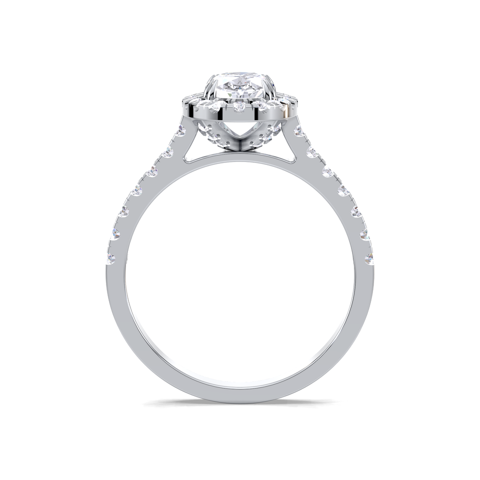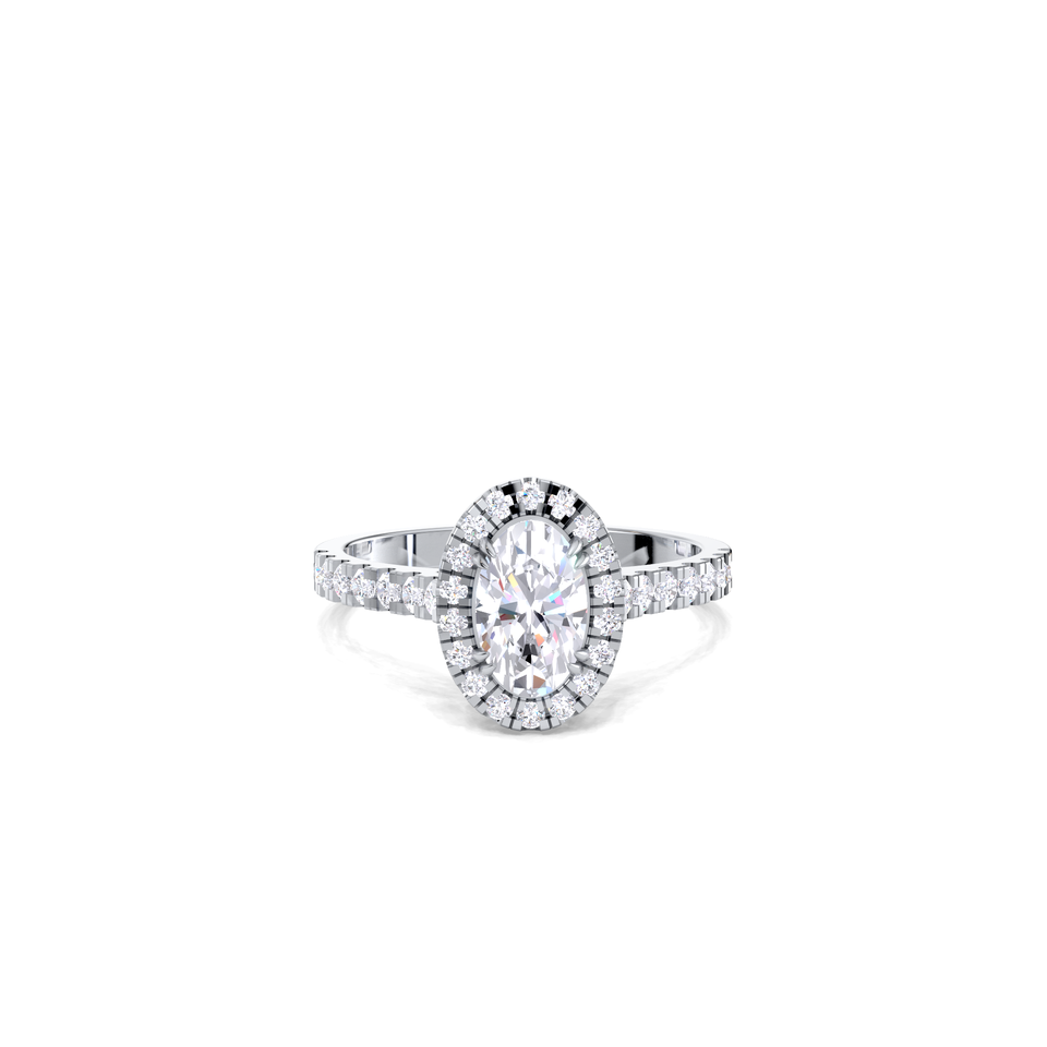 แหวนหมั้นทรงไข่ ประดับเพชรพาเว สองชั้นแบบเฮาโล