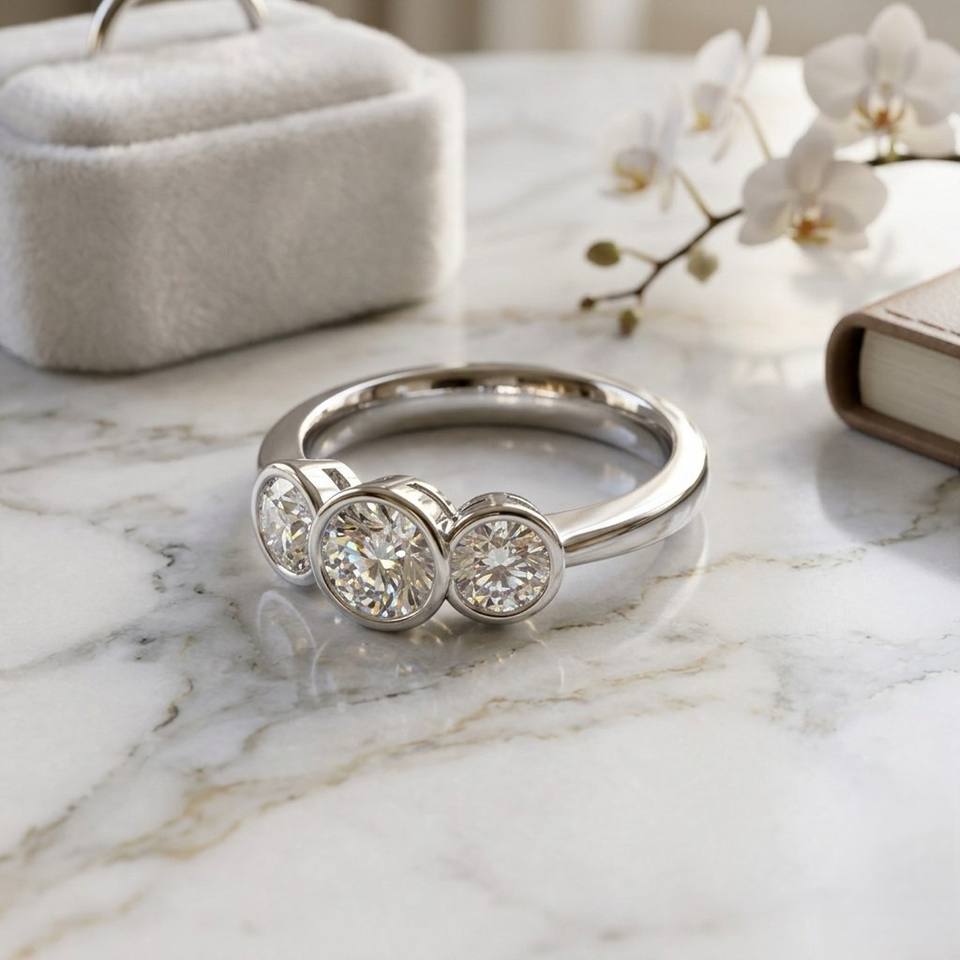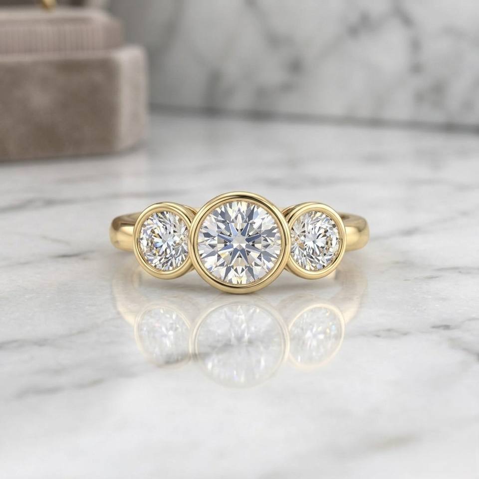 แหวนเพชรทรงกลมเจียระไนแบบบริลเลียนท์ น้ำหนัก 1.55 กะรัต ทอง 10k เพชรเลี้ยงในห้องปฏิบัติการ ฝังแบบเบเซล สำหรับแหวนหมั้นเพชรเม็ดเดี่ยวสำหรับผู้หญิงที่ได้รับการรับรอง