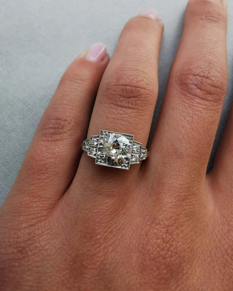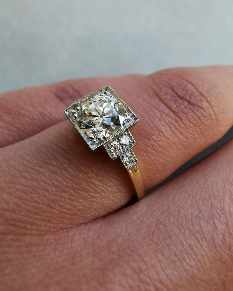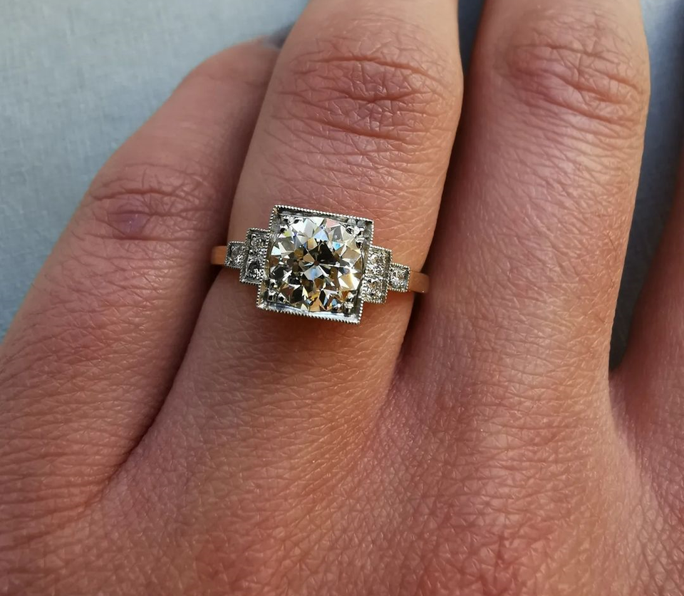 แหวนหมั้นเพชรทรงโบราณแบบฝังขอบ 1.55 กะรัต ทรง OMC เพชรเพาะเลี้ยงในห้องปฏิบัติการ แหวนแต่งงานเพชรทรงกลมแบบยุโรปโบราณ เครื่องประดับวินเทจ