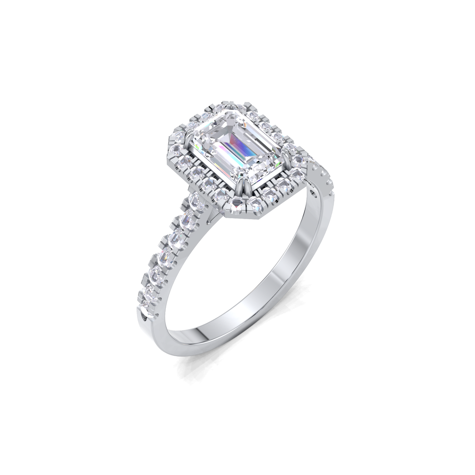 แหวนหมั้นทรงเอเมอรัลด์คัท ประดับเพชรพาเว่สองชั้น