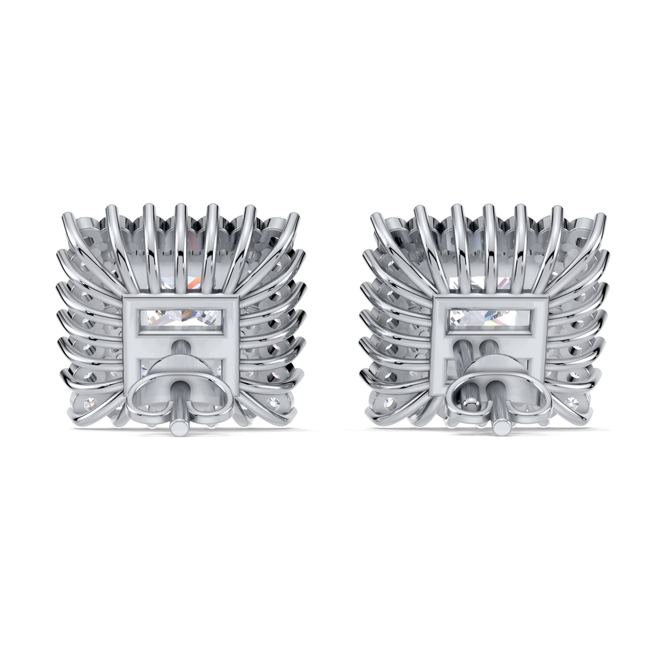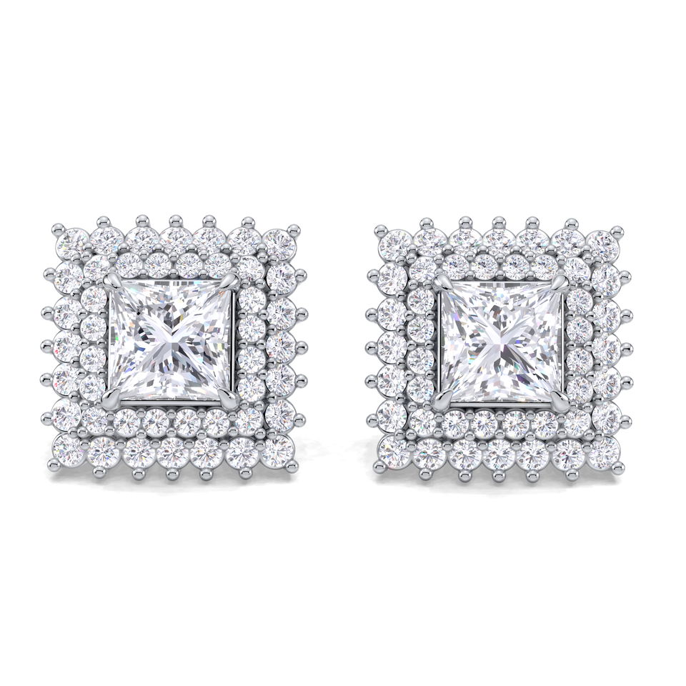 1.58CT Princess Cut Double Halo Diamond Stud Earrings 925 Solid Sterling Silver Rhodium Plated Screw Back