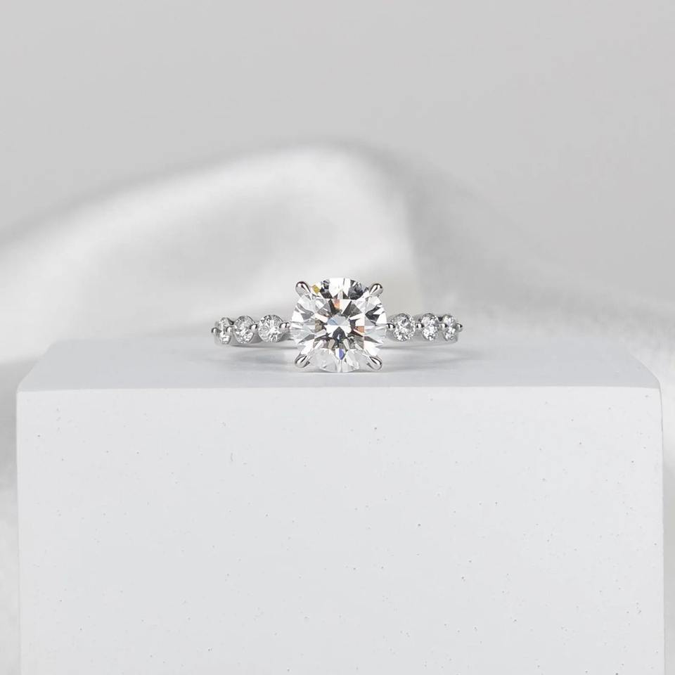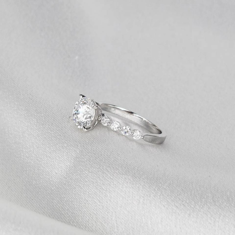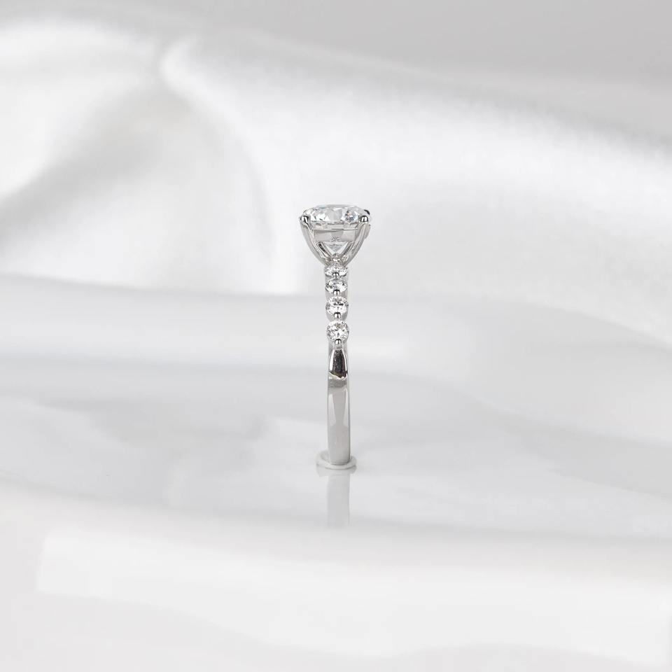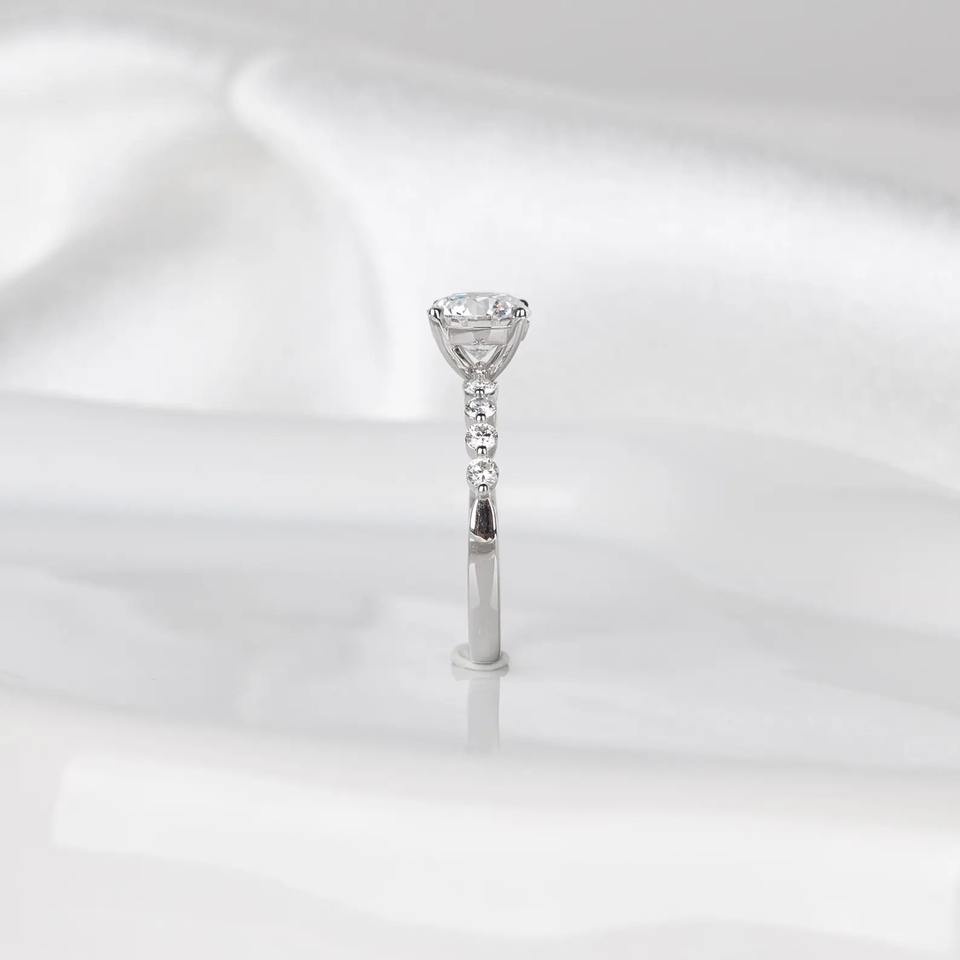 แหวนเพชรเพาะเลี้ยง 1.5 กะรัต รับรองโดย IGI สี D ความสะอาด VVS2 ทรงกลม ประดับเพชรรอบด้านแบบซ่อน ตัวเรือนทองคำขาว 14K
