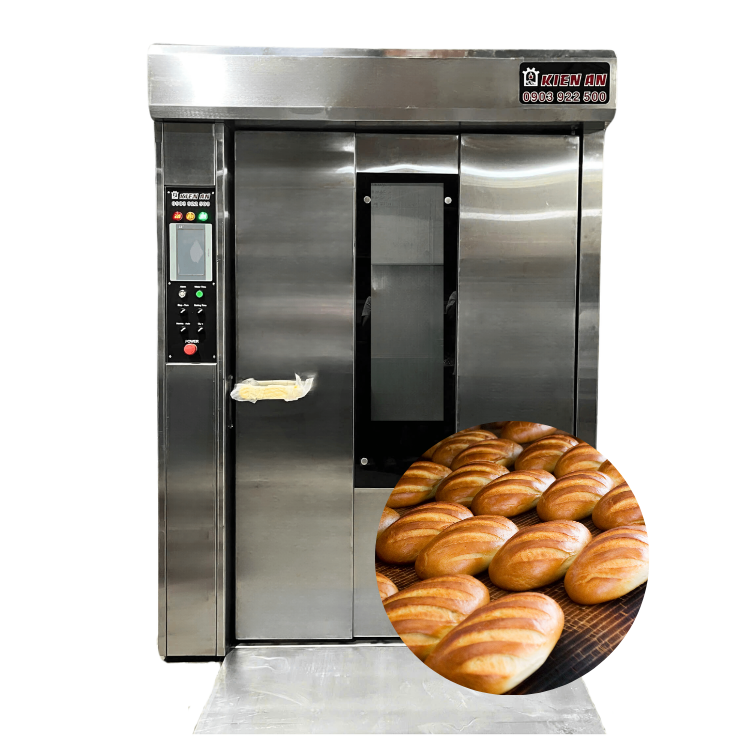 เตาอบขนมปัง1.5Hp แก๊สมอเตอร์24ถาดเตาอบขนมปังแบบหมุนน้ำหนัก1200กก.