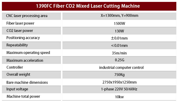 ชื่อสินค้า:เครื่องตัดเลเซอร์ไฟเบอร์ CO2 แบบผสม รุ่น 1390FC