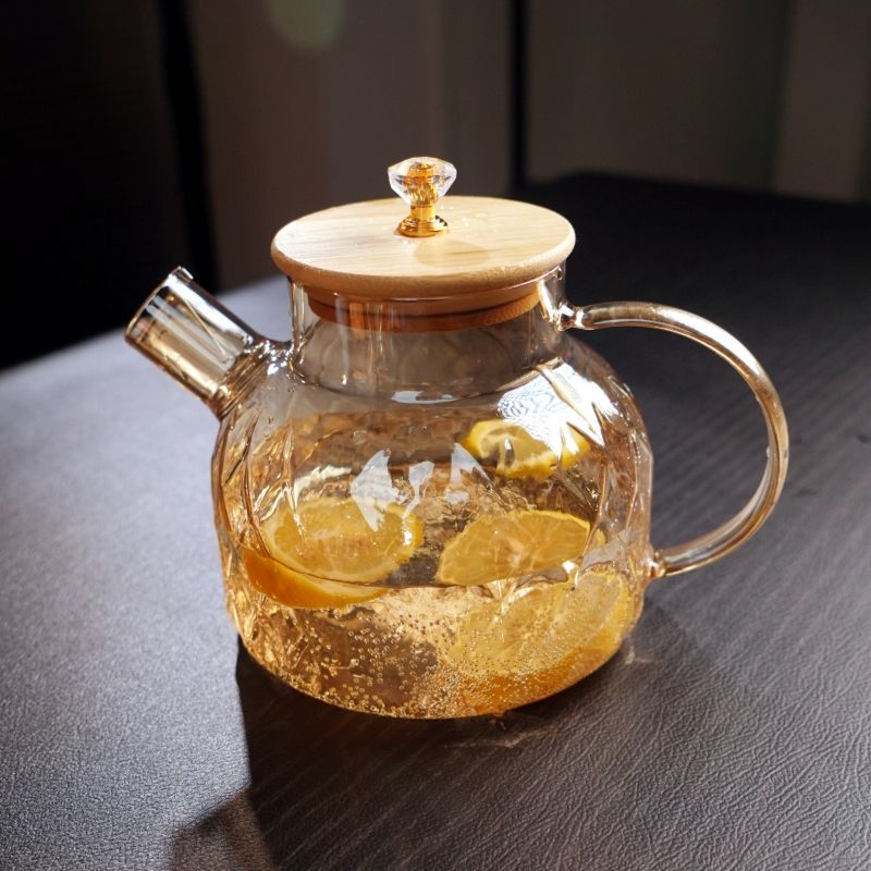 ชุดเหยือกแก้วบอโรซิลิเกตทรงสูง1.5L ชุดเหยือกความจุขนาดใหญ่พร้อมฝาและที่จับเหมาะสำหรับชาเย็นน้ำผลไม้และน้ำผสม