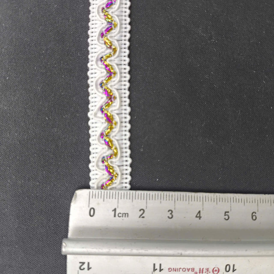 ลูกไม้โพลีเอสเตอร์สีขาวลายเพสลีย์หรูหราแบบวินเทจดั้งเดิม ขนาดกว้าง 1.5 ซม. เป็นมิตรกับสิ่งแวดล้อม เหมาะสำหรับตกแต่งชุดเดรสและของตกแต่งบ้าน