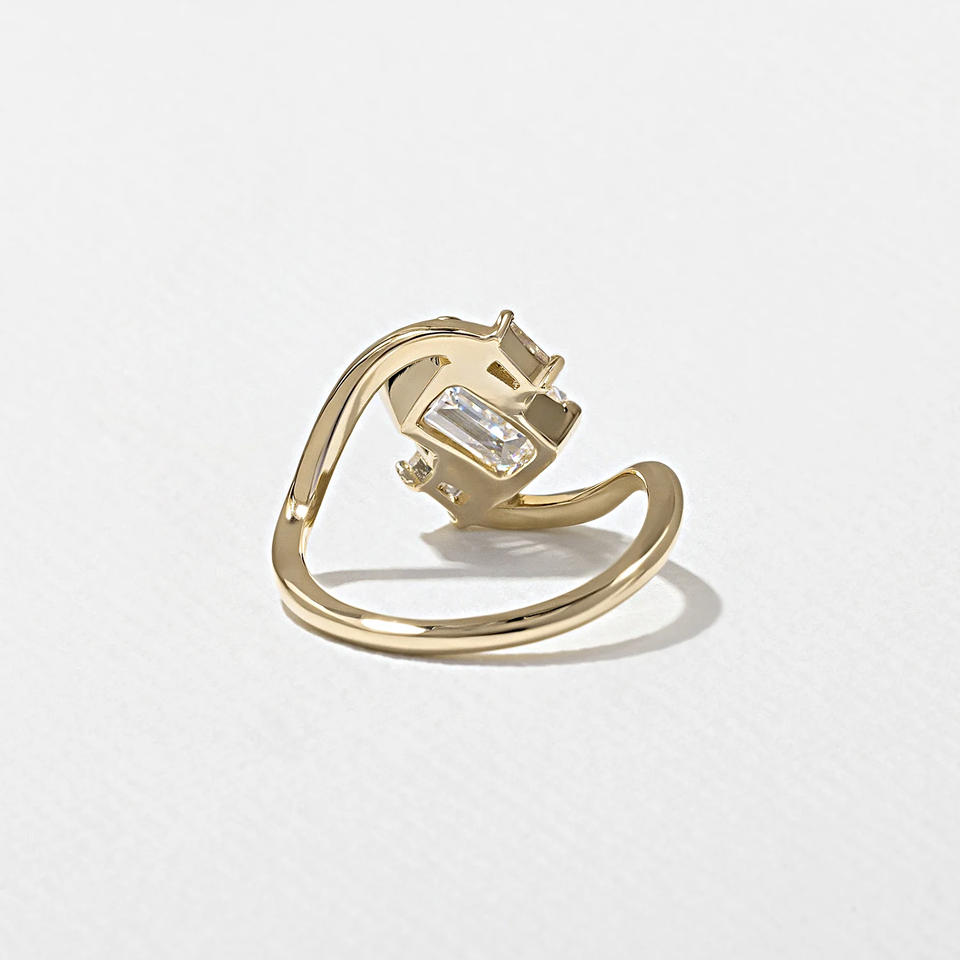 แหวนเพชรเพาะเลี้ยงทรงมรกต 1.5 กะรัต ทองคำแท้ ดีไซน์คลื่นลื่นไหล แหวนหมั้นแบบพิเศษ ทองคำ 14K/18K สีเหลือง สำหรับงานแต่งงาน
