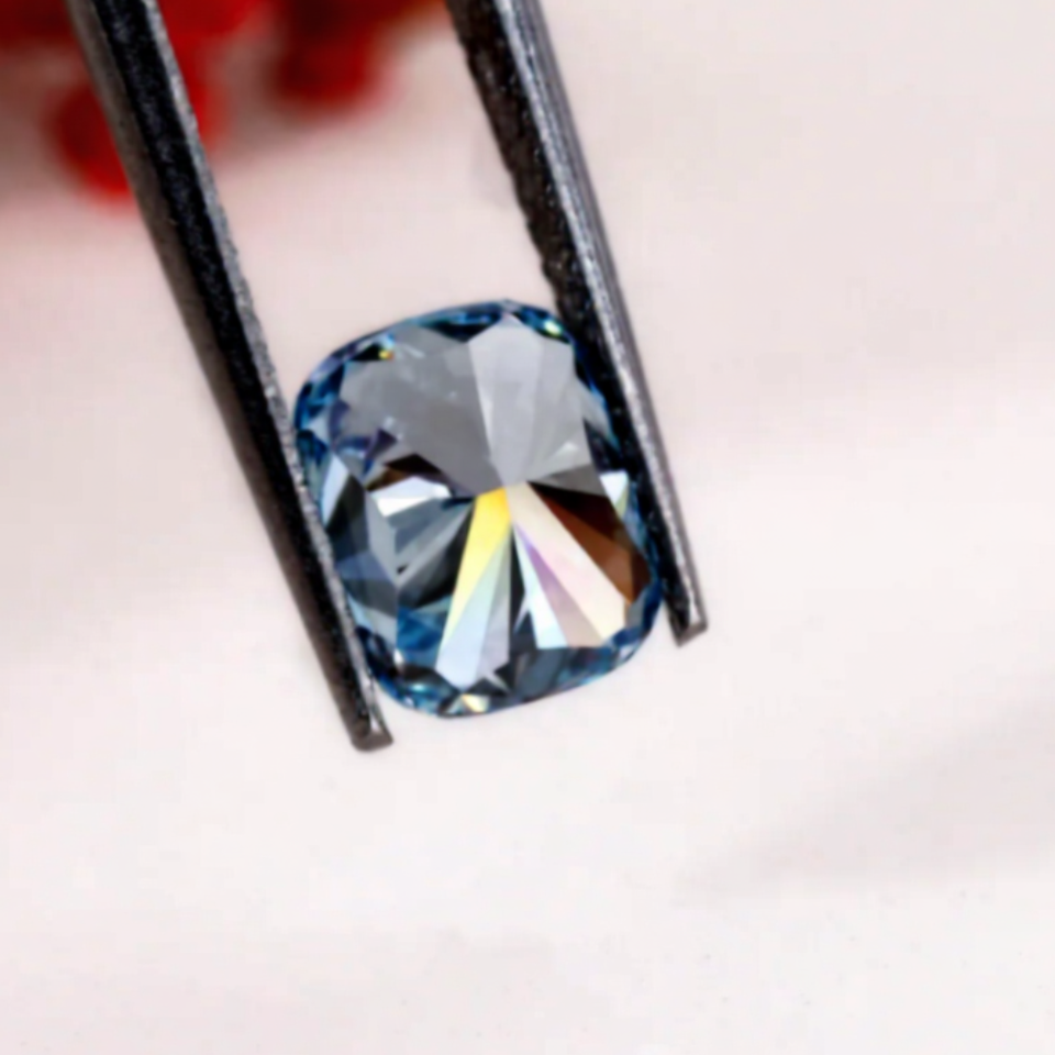 เบาะรองนั่งสีฟ้าแฟนซีสำหรับ1.5ct ตัดในห้องปฏิบัติการเพชรที่โตขึ้นได้รับการรับรองความคมชัด IGI เจียระไนเพชรแบบหลวมที่ยอดเยี่ยมสำหรับการทำเครื่องประดับ