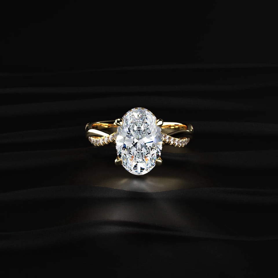 แหวนเพชรทรงรี 1.5 กะรัต EF-VS1 เพาะเลี้ยงในห้องปฏิบัติการ ตัวเรือนทอง 14 กะรัต ดีไซน์แหวนแต่งงานแบบแยกส่วน สง่างาม หรูหรา สำหรับผู้หญิง