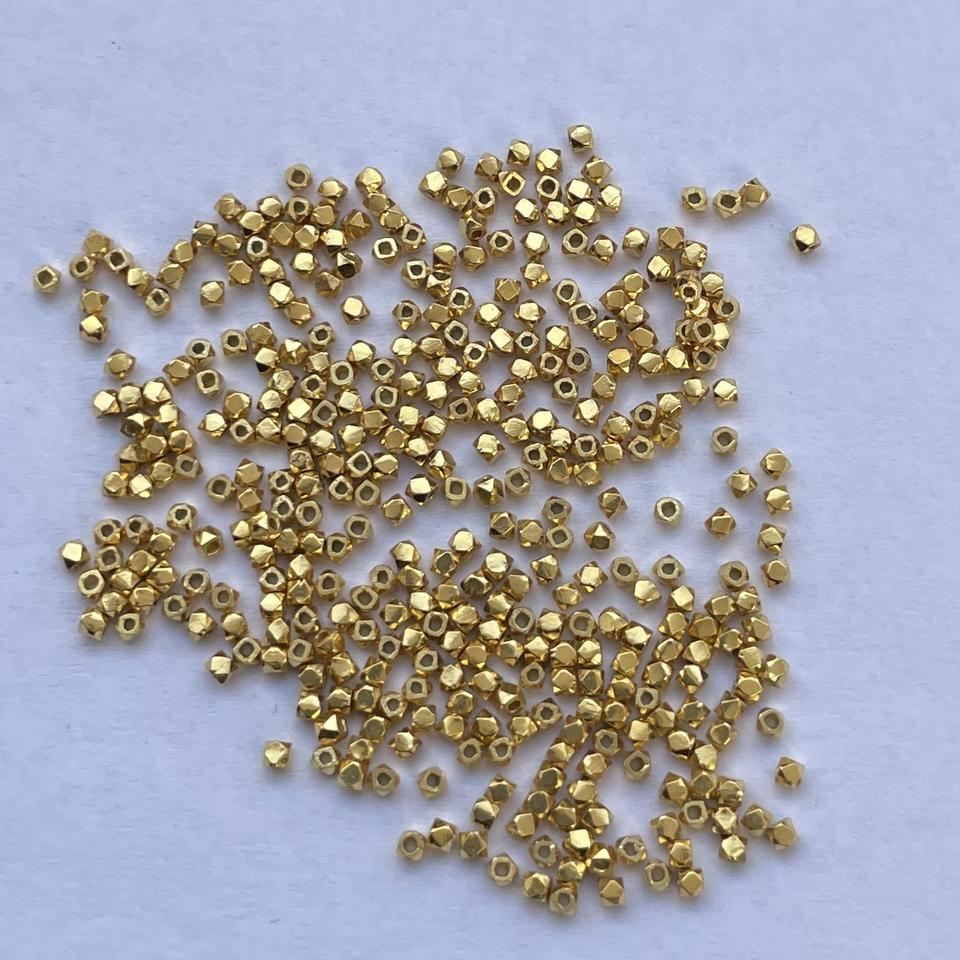 ลูกปัดเม็ดทองคำแท้ 1.5 มม. 2 มม. 14k 18k ลูกปัดเจียระไนแบบเหลี่ยม เครื่องประดับทำมือคุณภาพสูง ชิ้นส่วนสำหรับงาน DIY ตัวเว้นระยะ รูใหญ่ ตัวเว้นระยะสำหรับสร้างเครื่องประดับ