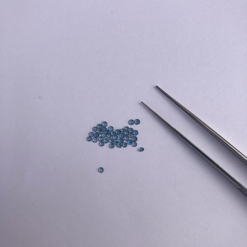 ชื่อสินค้า:พลอยโทแพซสีน้ำเงินลอนดอนธรรมชาติ ขนาด 1.5 มม. เจียระไนเหลี่ยมเพชร ทรงกลม แบบเม็ด