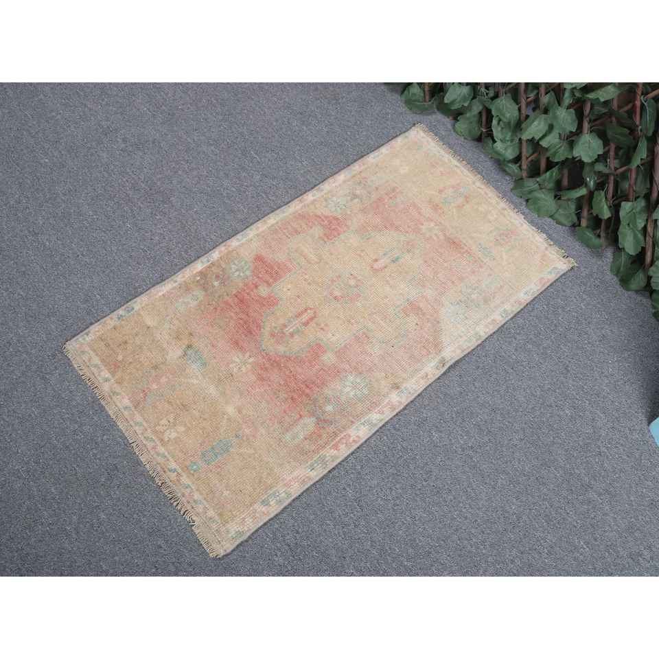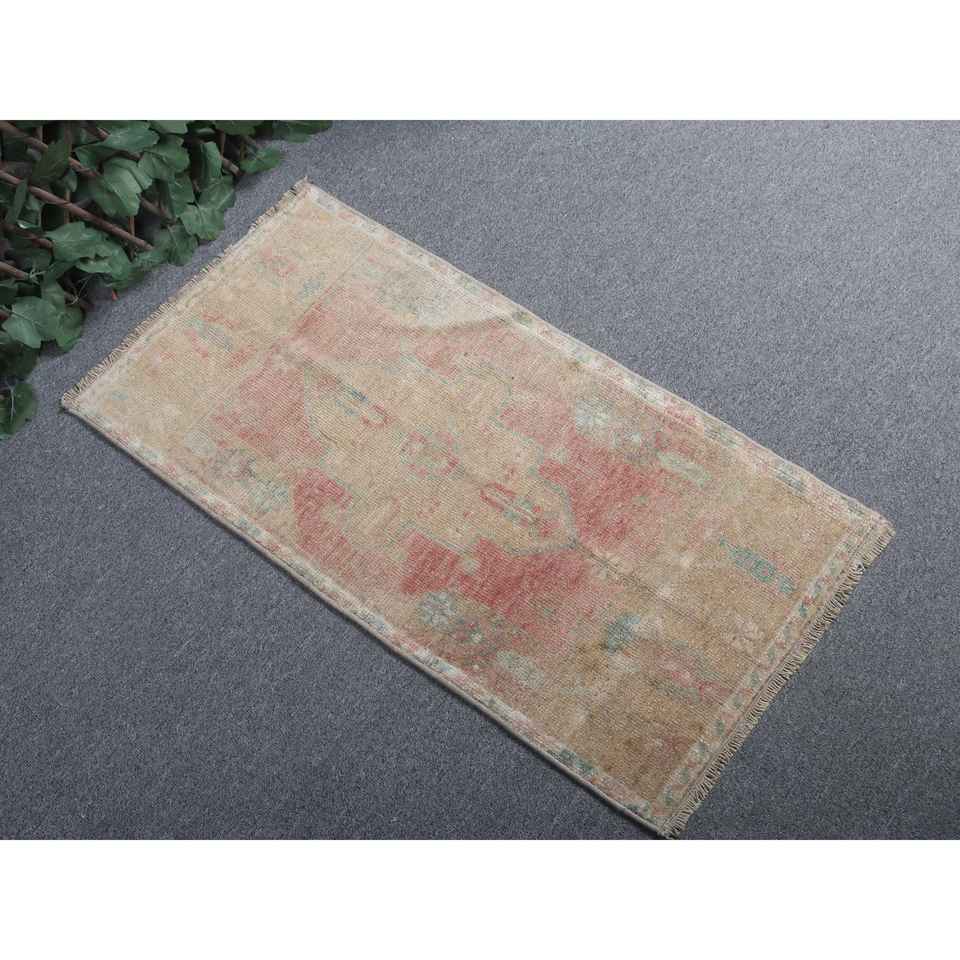 พรมตุรกีวินเทจขนาด 1.5x2.8 ฟุต พรมขนาดเล็ก พรมขนสัตว์สีแดง
