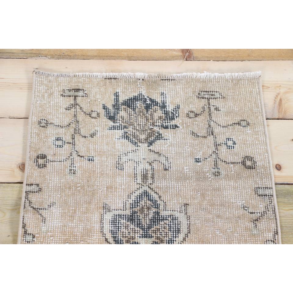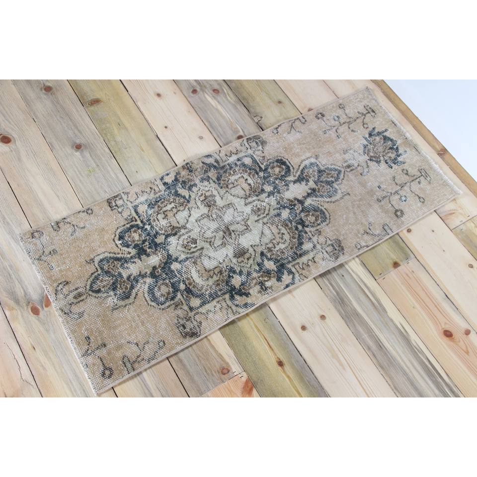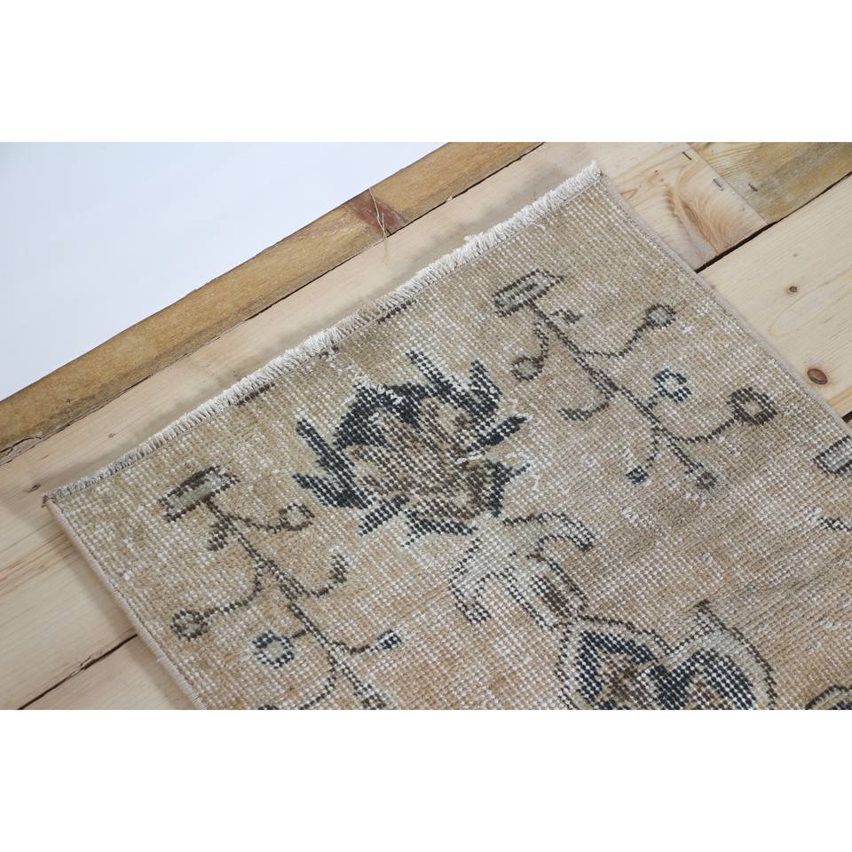 พรมวินเทจตุรกีขนาด 1.5x3.7 ฟุต พรมขนาดเล็ก พรมสีน้ำตาล พรมลายดอกไม้