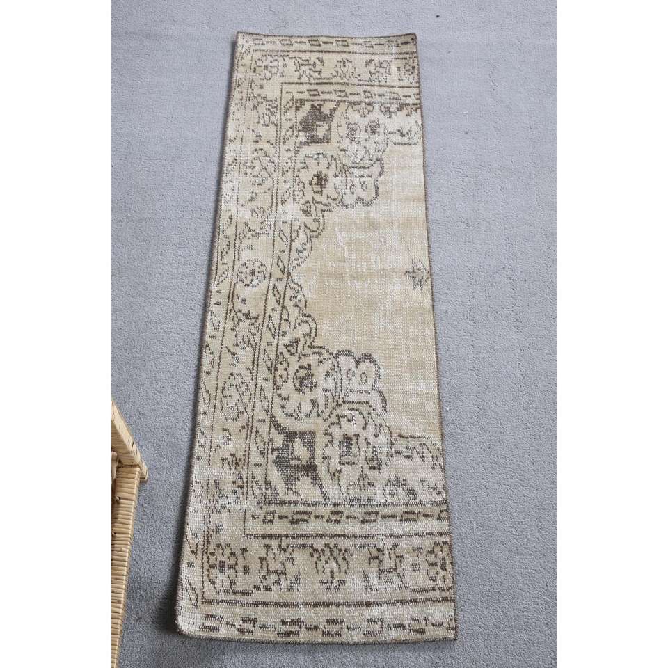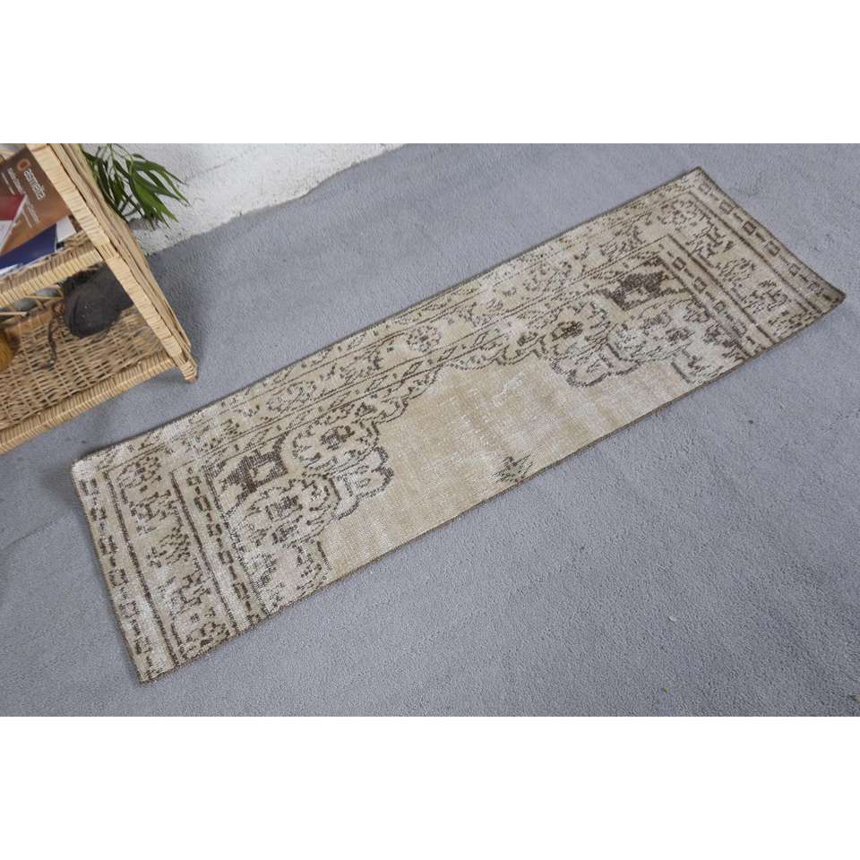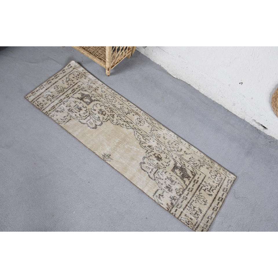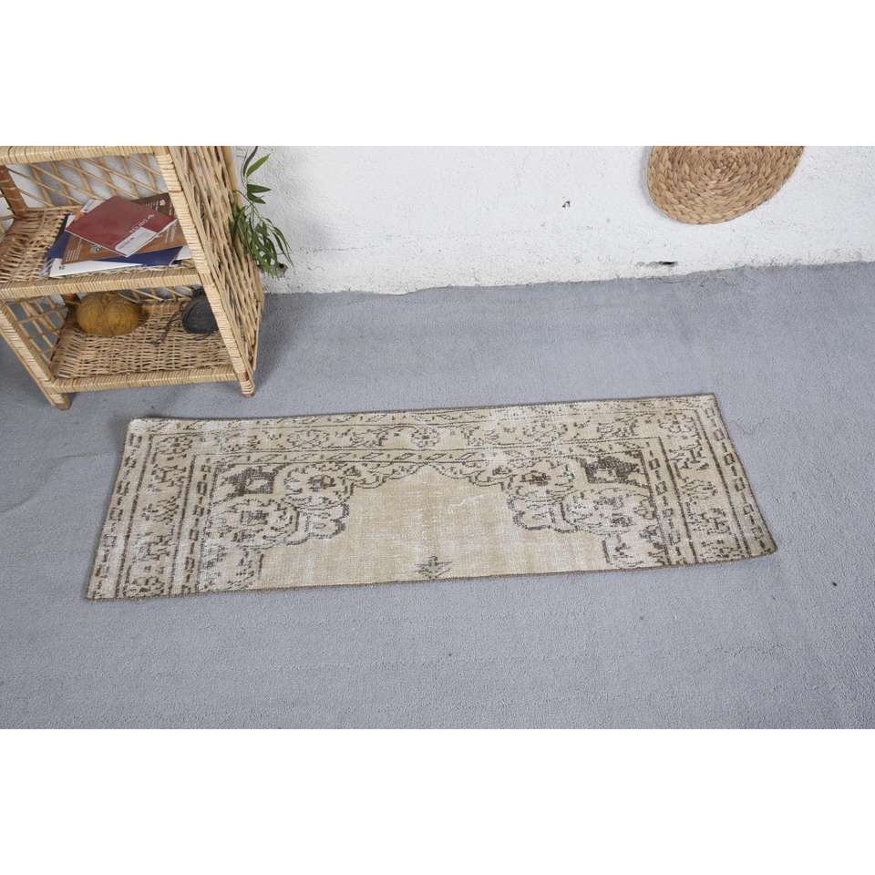 พรมตุรกีขนาด 1.5x4.7 ฟุต พรมวินเทจขนาดเล็ก พรมลายดอกไม้สีเบจ
