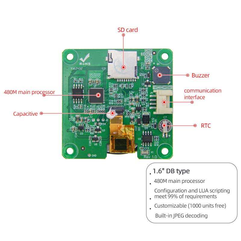 1.6นิ้ว400x400 IPS วงกลม OLED UI Serial Screen การกำหนดค่าสคริปต์ Lua รอบ AMOLED TFT จอแสดงผลแบบสัมผัส capacitive